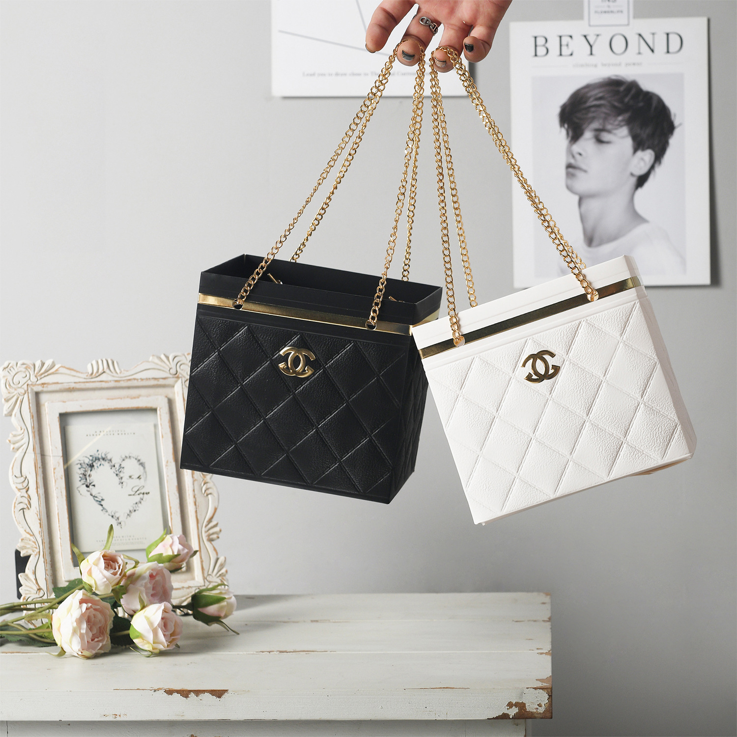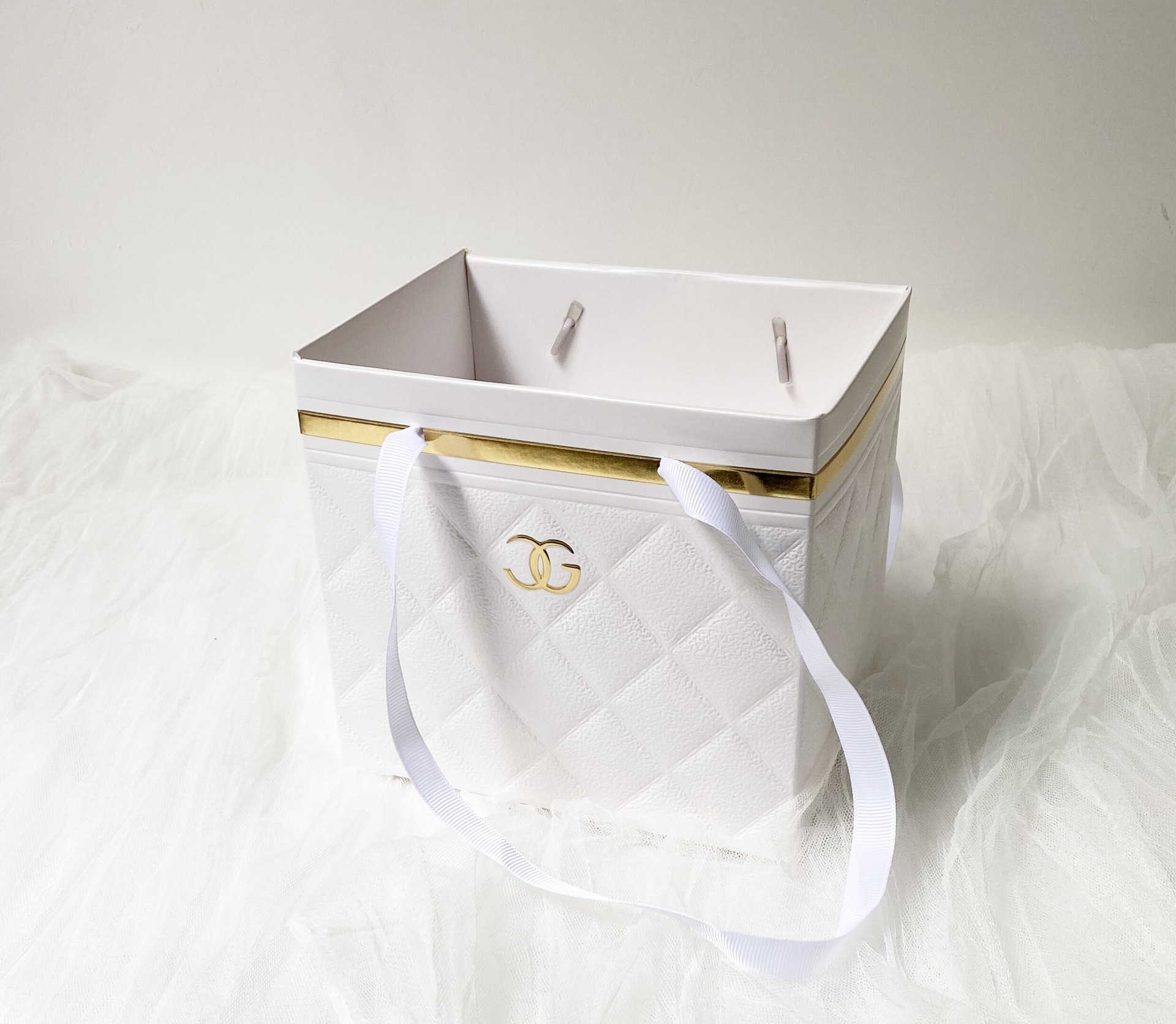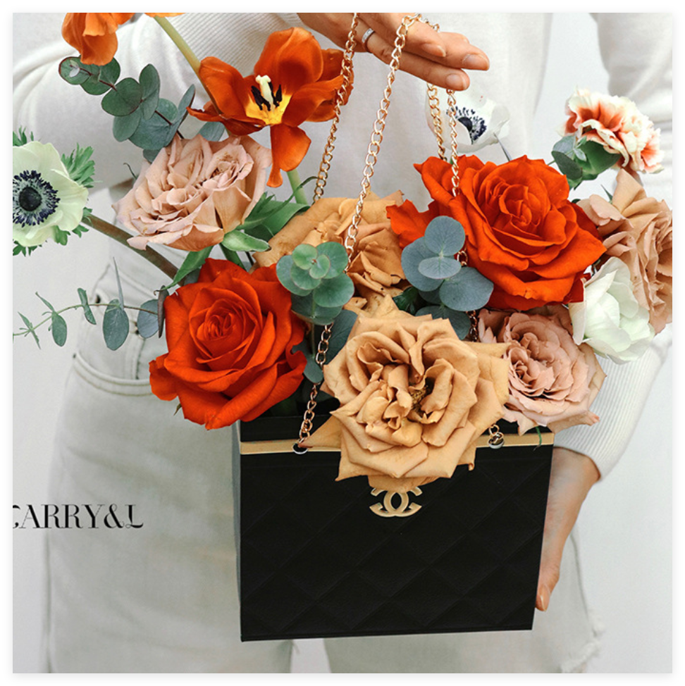 Discover our elegant flower hand bag with a Channel-inspired logo, designed to elevate the presentation of your floral gifts. Made with durable and eco-friendly materials, this stylish hand bag offers both functionality and luxury appeal. Its wide base and sturdy handles ensure that bouquets are carried with ease, making it a favorite choice for florists and event planners.