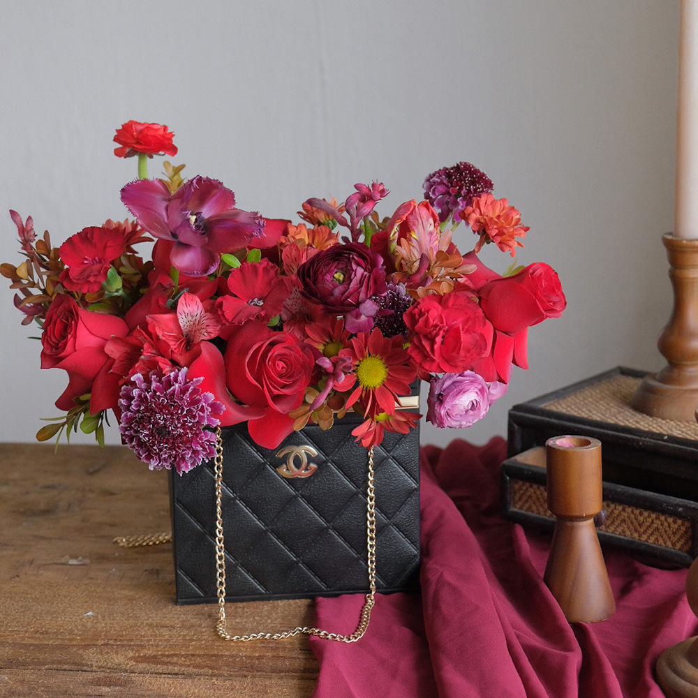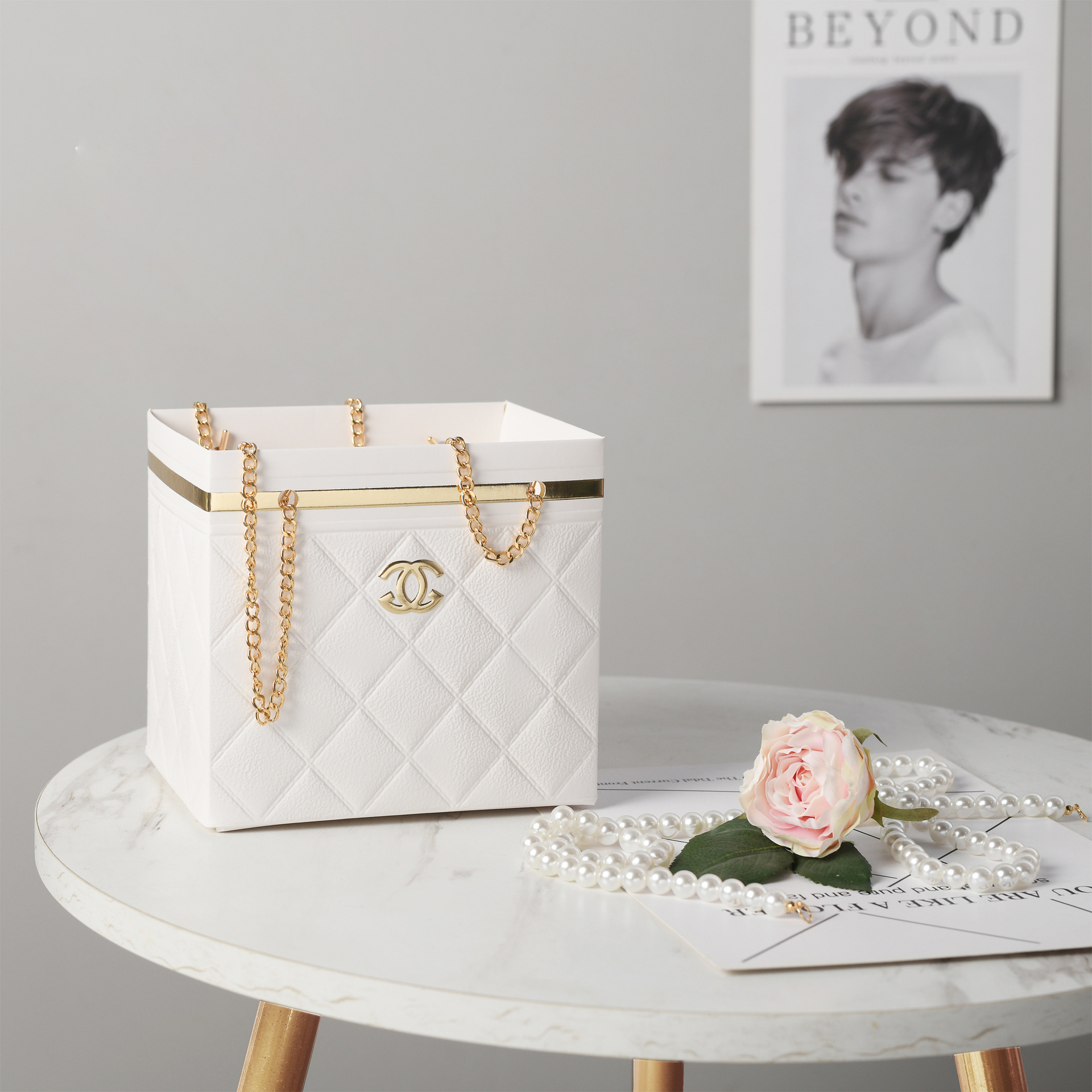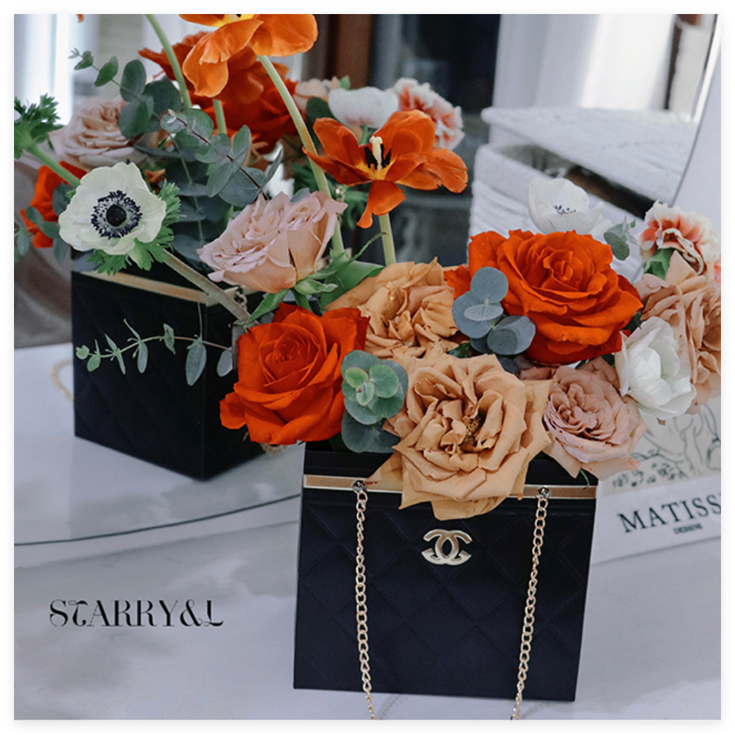 Discover our elegant flower hand bag with a Channel-inspired logo, designed to elevate the presentation of your floral gifts. Made with durable and eco-friendly materials, this stylish hand bag offers both functionality and luxury appeal. Its wide base and sturdy handles ensure that bouquets are carried with ease, making it a favorite choice for florists and event planners.